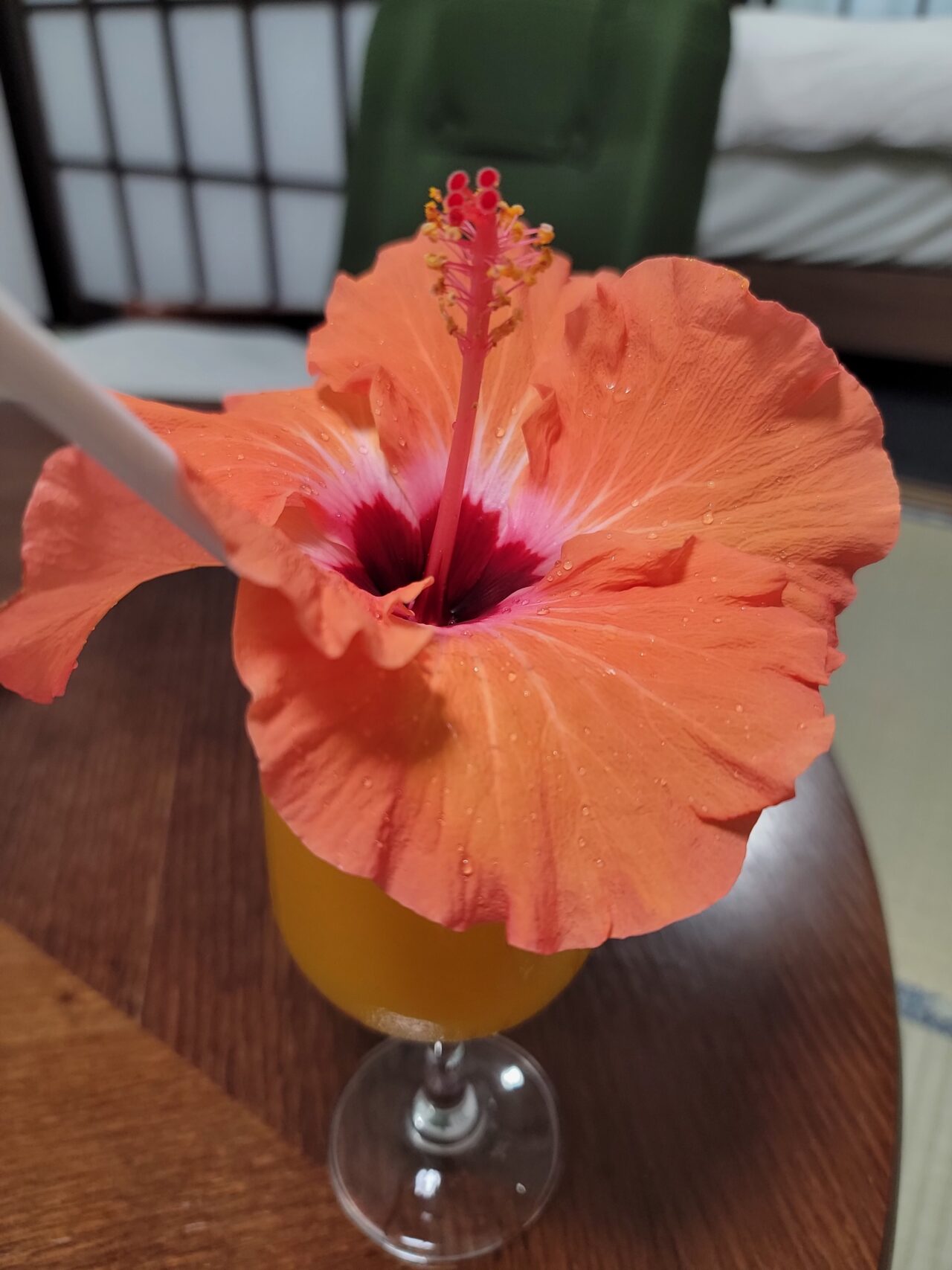 お庭に咲く大きなハイビスカスや、素朴な雰囲気など、宿に来ると記憶が蘇ってきました。