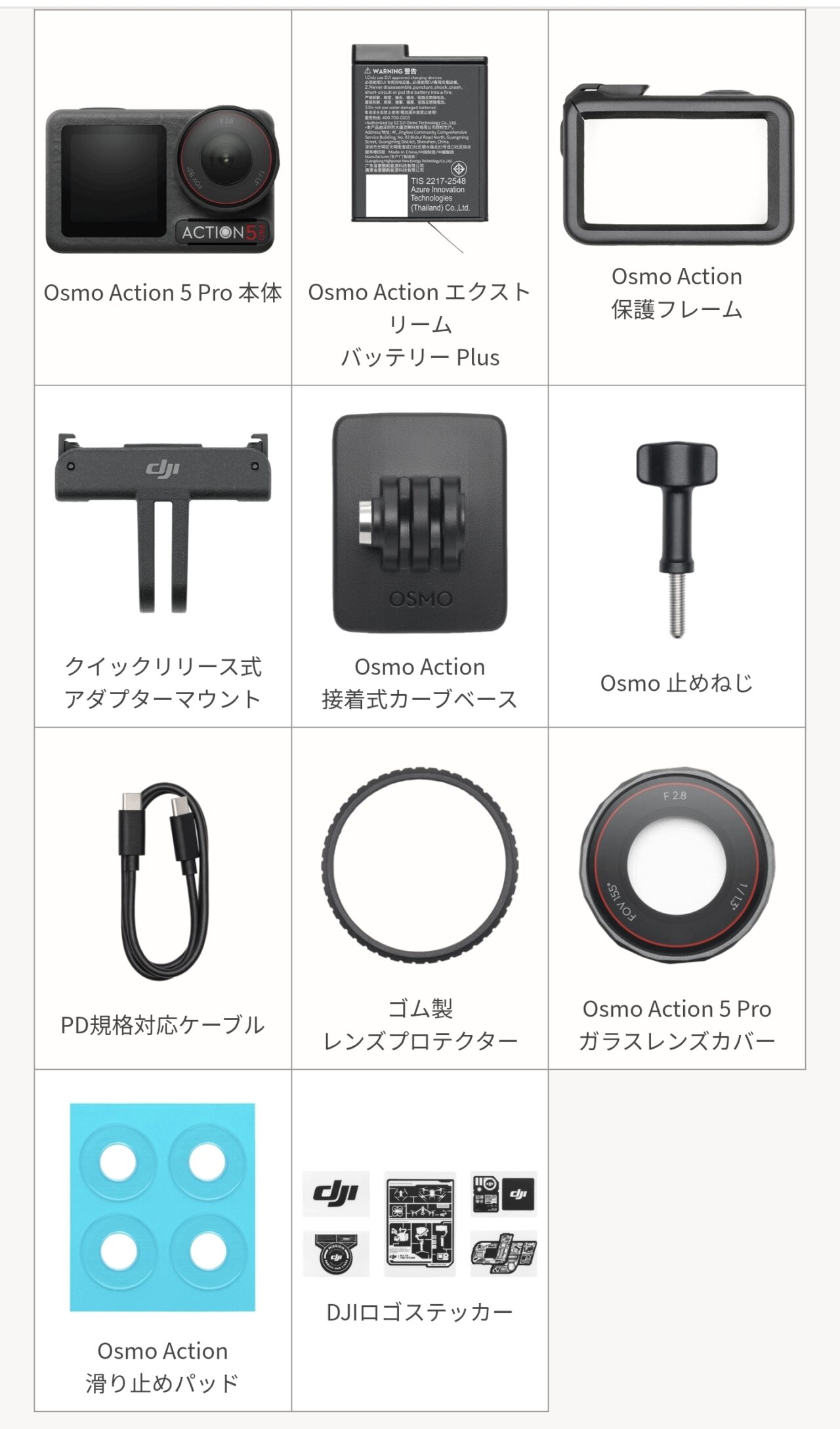 Osmo Action 5 Pro では購入時に、各用途に合わせたコンボを選べるので、自分の撮影用途を基準に購入してくださいね。